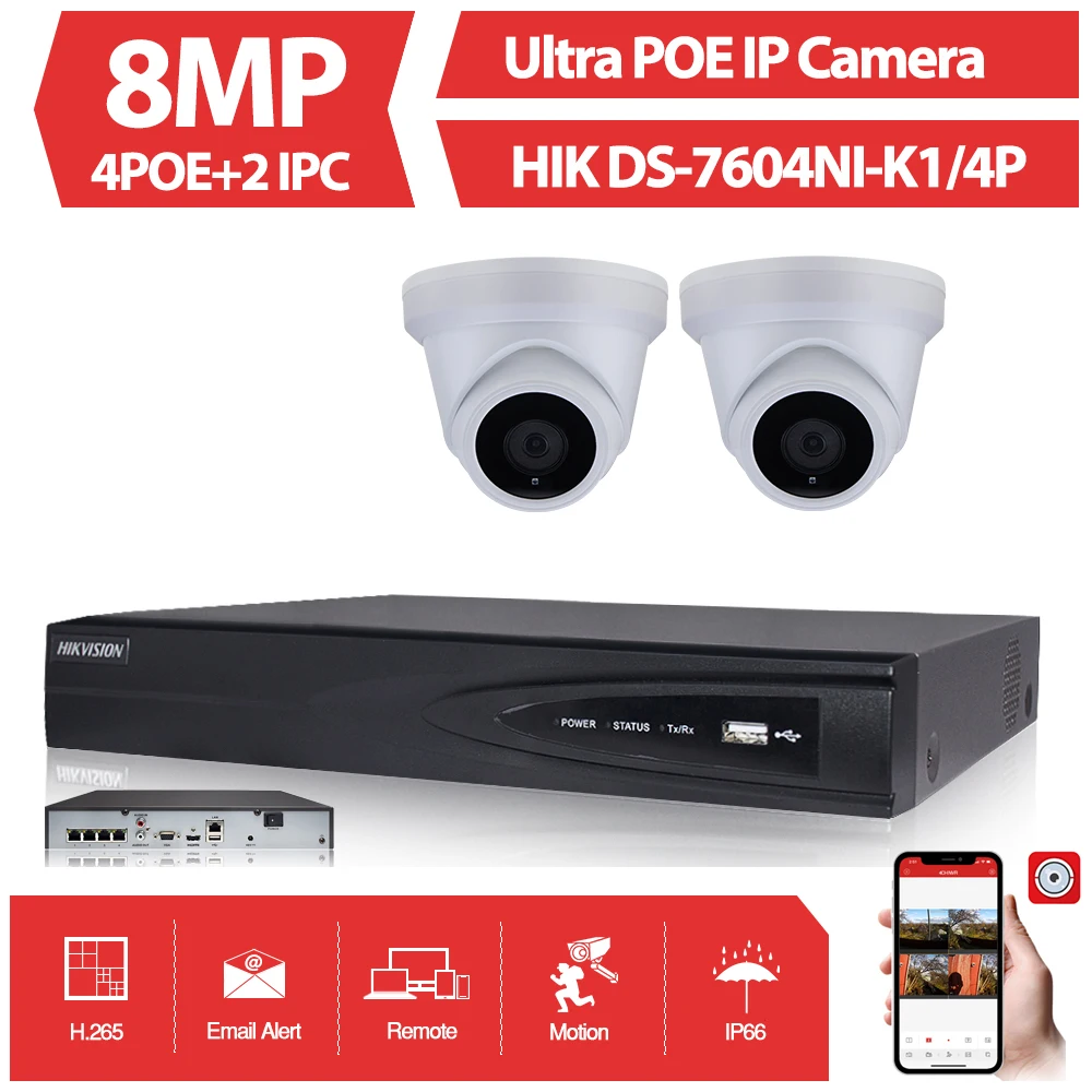 Best NEW 4CH CCTV System Ultra 8MP Outdoor Security POE Camera with Hikvision 4 POE NVR DS-7604NI-K1/4P