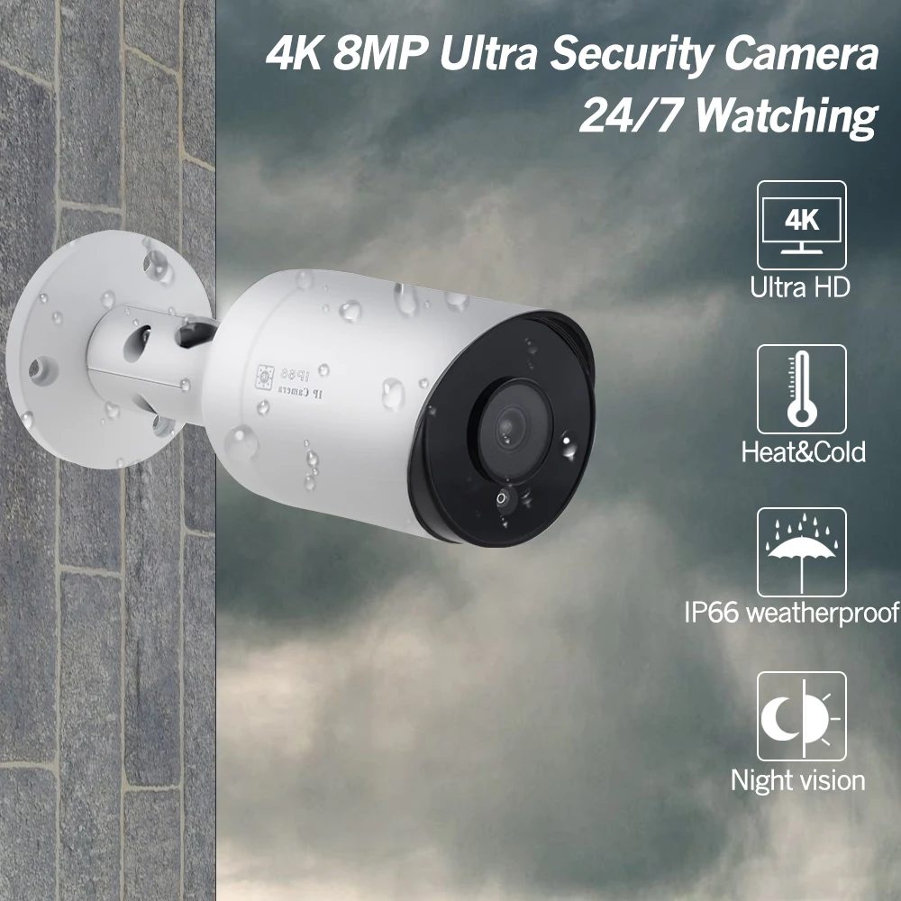 NEW 4CH CCTV System Ultra 8MP Outdoor Security POE Camera with Hikvision 4 POE NVR DS-7604NI-K1/4P