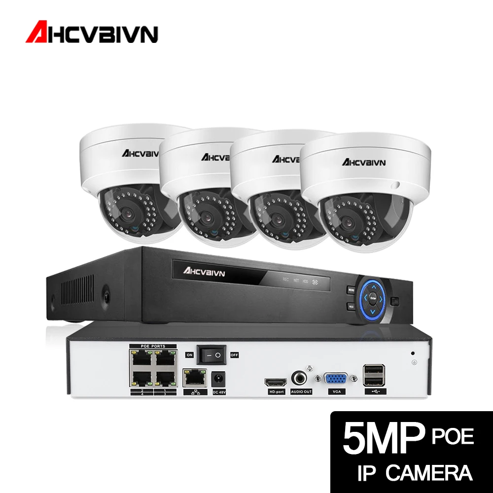 BEST QUALITY AHCVBIVN 5MP POE Video Surveillance Kit 4CH NVR CCTV Camera System 4PCS Megapixel 5 MP Weatherproof