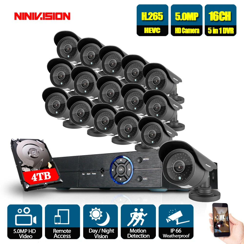 TOP 5MP Ultra HD 16CH DVR H.265+ CCTV Camera Security System 16PCS IP66 Weaterproof Outdoor 5MP Camera