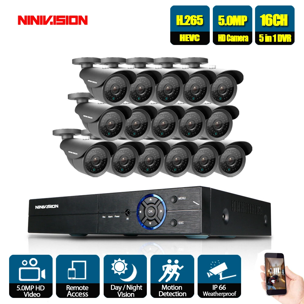 5MP Ultra HD 16CH DVR H.265+ CCTV Camera Security System 16PCS IP66 Weaterproof Outdoor 5MP Camera