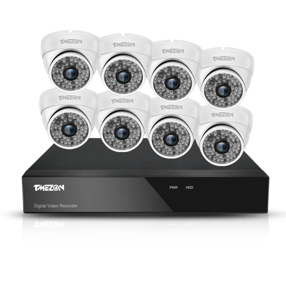 TMEZON 8CH CCTV System 8PCS 1080P Outdoor Weatherproof Security Camera 8CH 1080P DVR Day/Night Kit