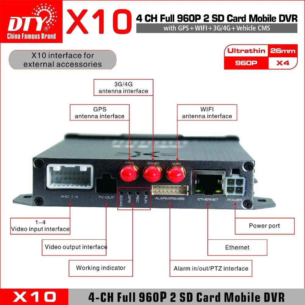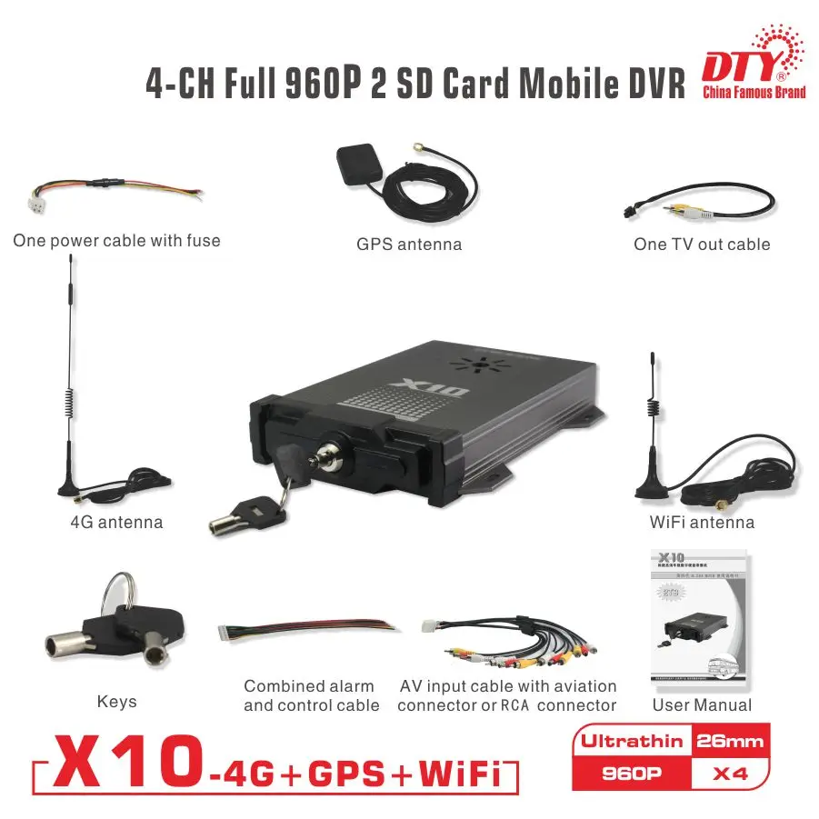 DTY 720P AHD 4 ch dvr cctv with shock-proof support x10s-4GW kit (X10S-4GW dvr+4 AHD camera + 5M ex
