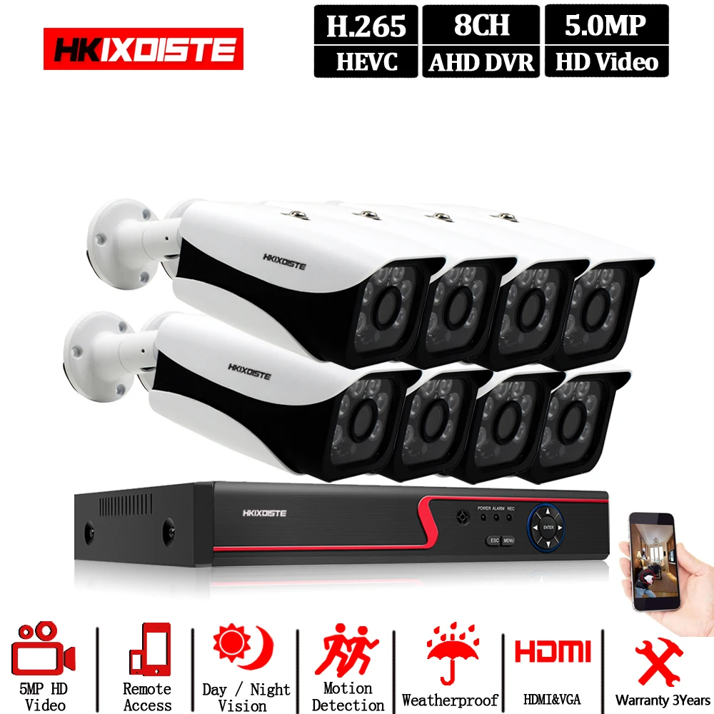 Full HD 5MP 8 Channel Home Outdoor Surveillance System AHD DVR 8CH Kits 5MP CCTV Security Cameras S