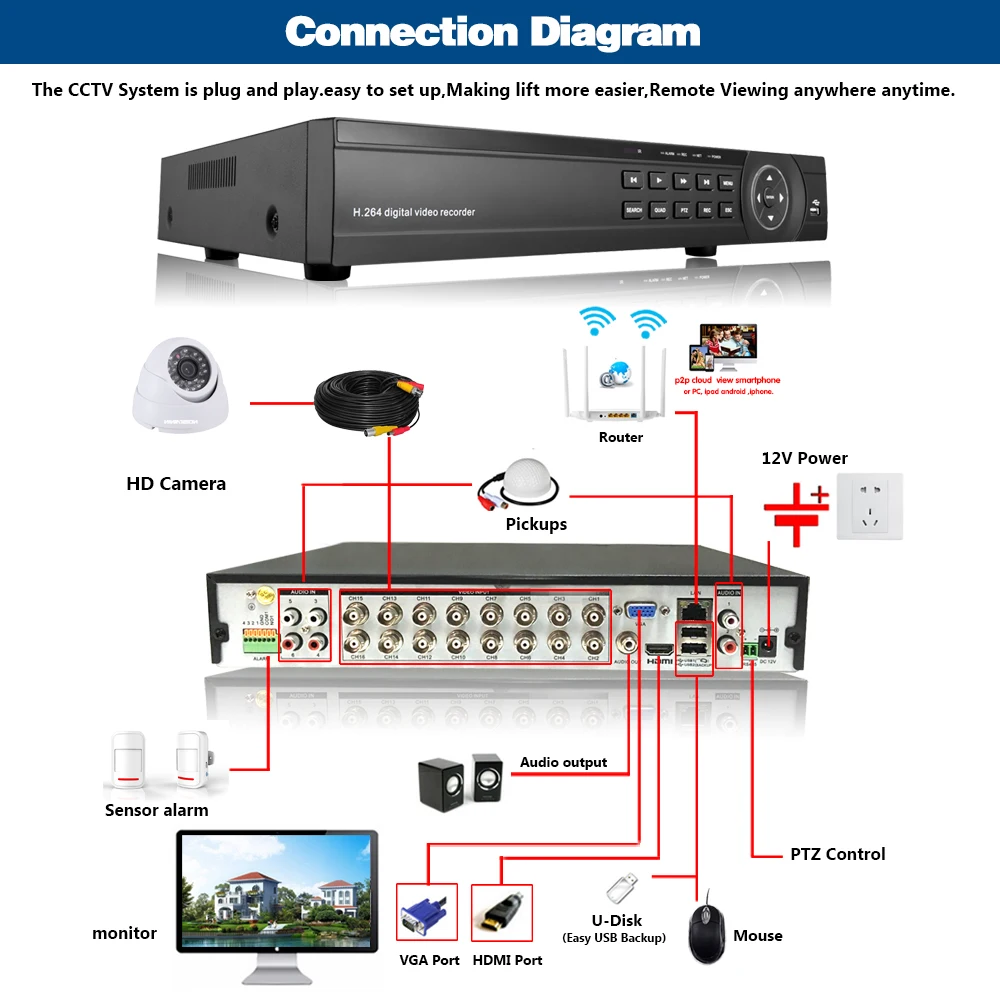 16ch CCTV System CCD SONY Camera 16PCs Security Camera System AHD DVR 1080P HDMI CCTV DVR Recorder