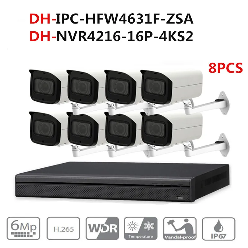 DH CCTV Camera Security System Kit 8PCS 6MP POE Zoom IP Camera IPC-HFW4631F-ZSA 16POE 4K NVR NVR421