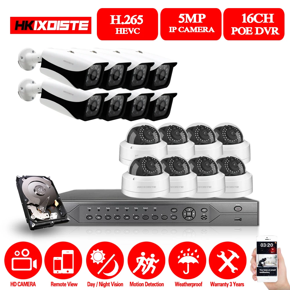 TOP HKIXDISTE 16CH POE 5MP Security NVR Sets 2MP Audio Sound CCTV Camera System Dome Bullet Indoor Outd