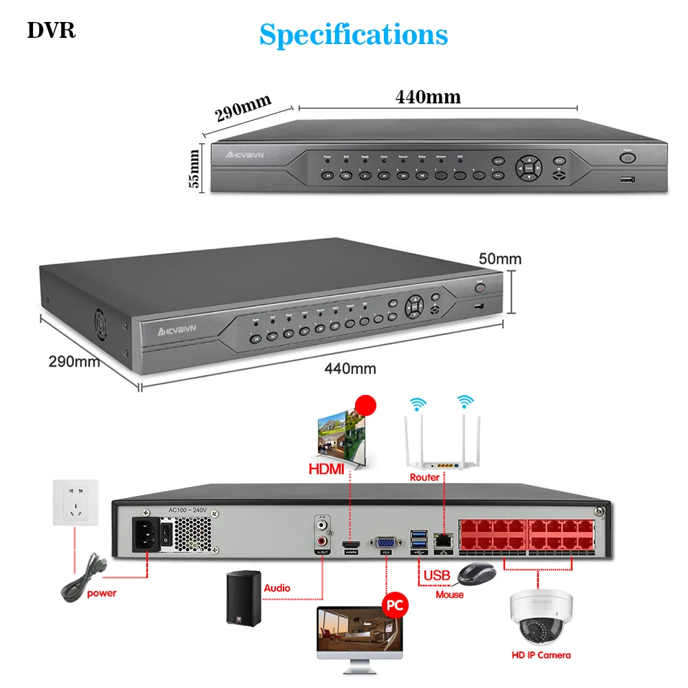 4K POE NVR 5MP 4MP 3MP 2MP kit PoE IP Camera P2P Cloud Onvif FTP CCTV System IR Outdoor Night Visio