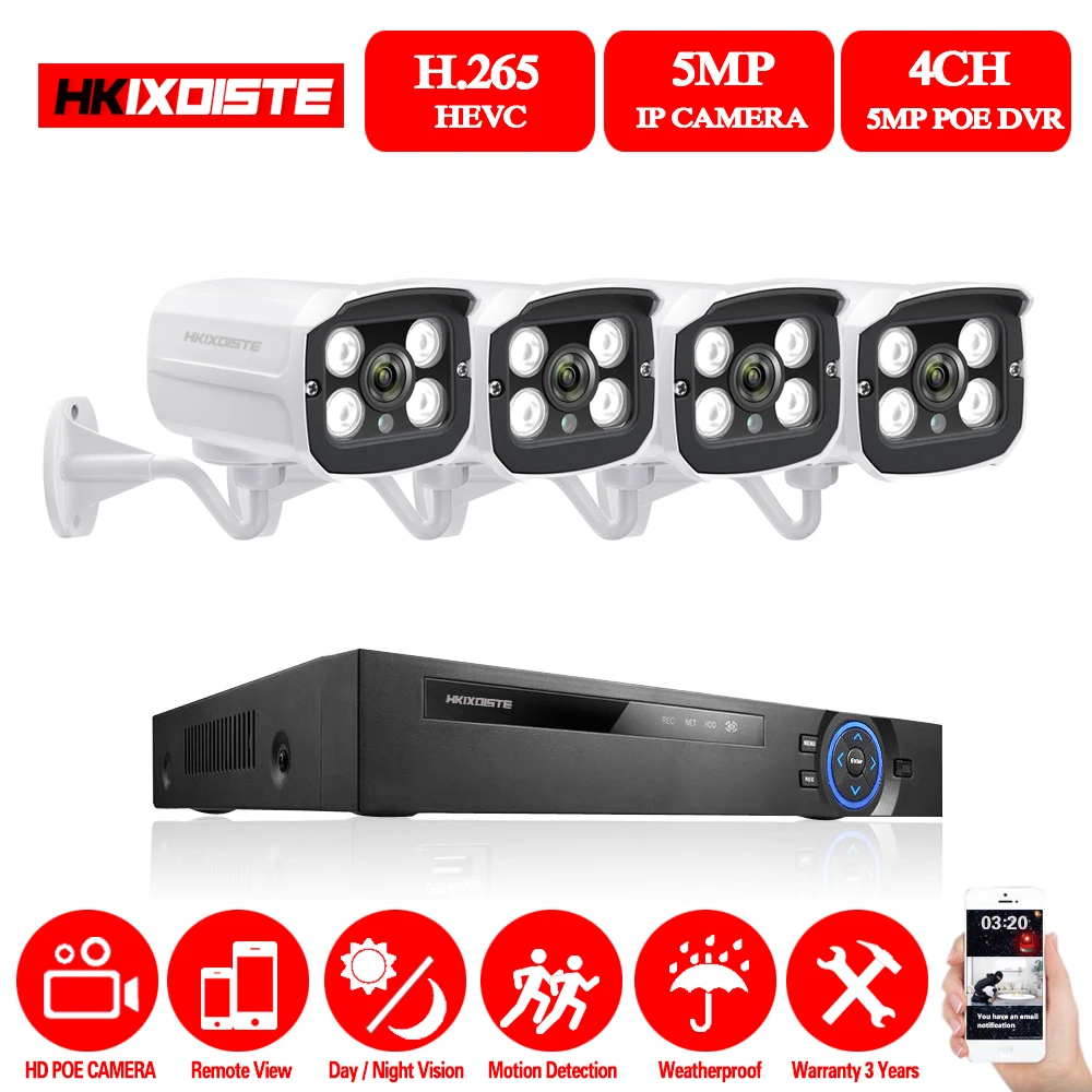 HKIXDISTE 4CH 5MP POE NVR CCTV Camera System 5.0MP IP Network NVR Security Camera IR Outdoor Video