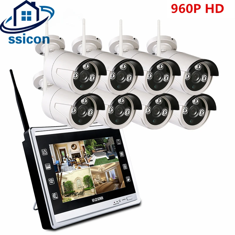 BEST QUALITY SSICON 1.3MP Wireless Home Security Camera 960P CCTV System with 12" LCD Monitor 8CH NVR Screen Wif