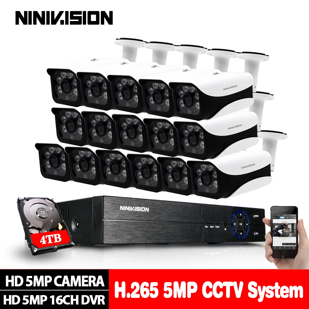16CH 5MP 5in1 CCTV H.265 DVR HD 16PCS 2560*1944 5MP TVI Security Camera Outdoor Bullet Camera Home