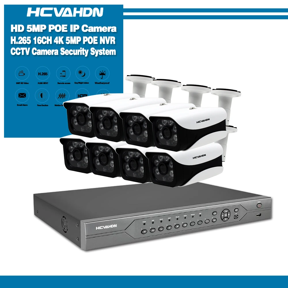 Hot Sale 4K POE Surveillance Cameras System 16CH 5.0MP Security Camera POE HD CCTV DVR 16PCS 5.0 MP IR Outdo
