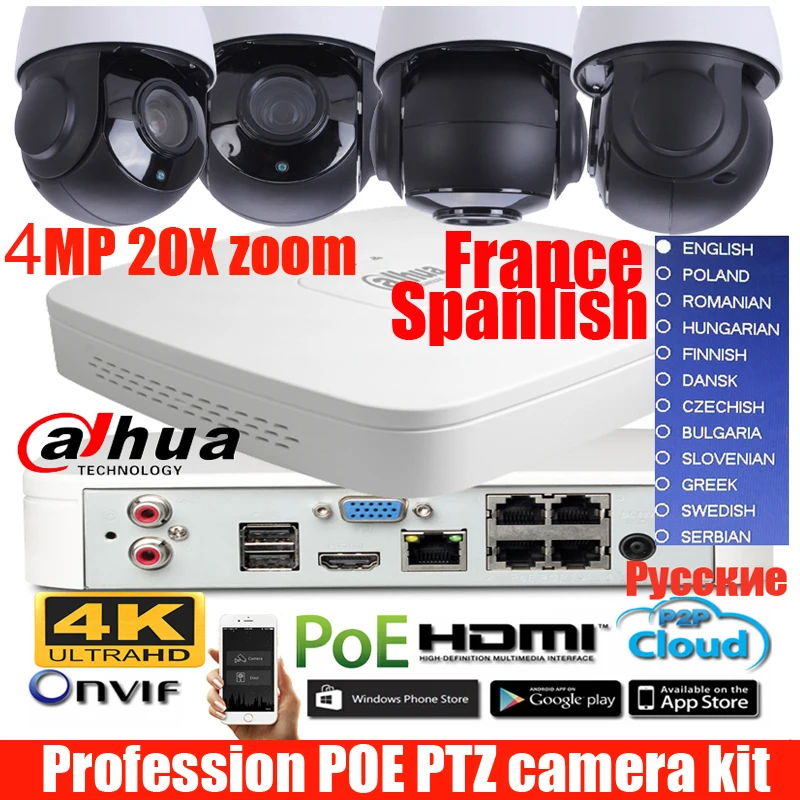 REVIEW TOP SELLER Dahua H.265 4K mutil language NVR4104-P-4ks2 CCTV camera System with 4PCS 4mp h.265 20X zoom onvif