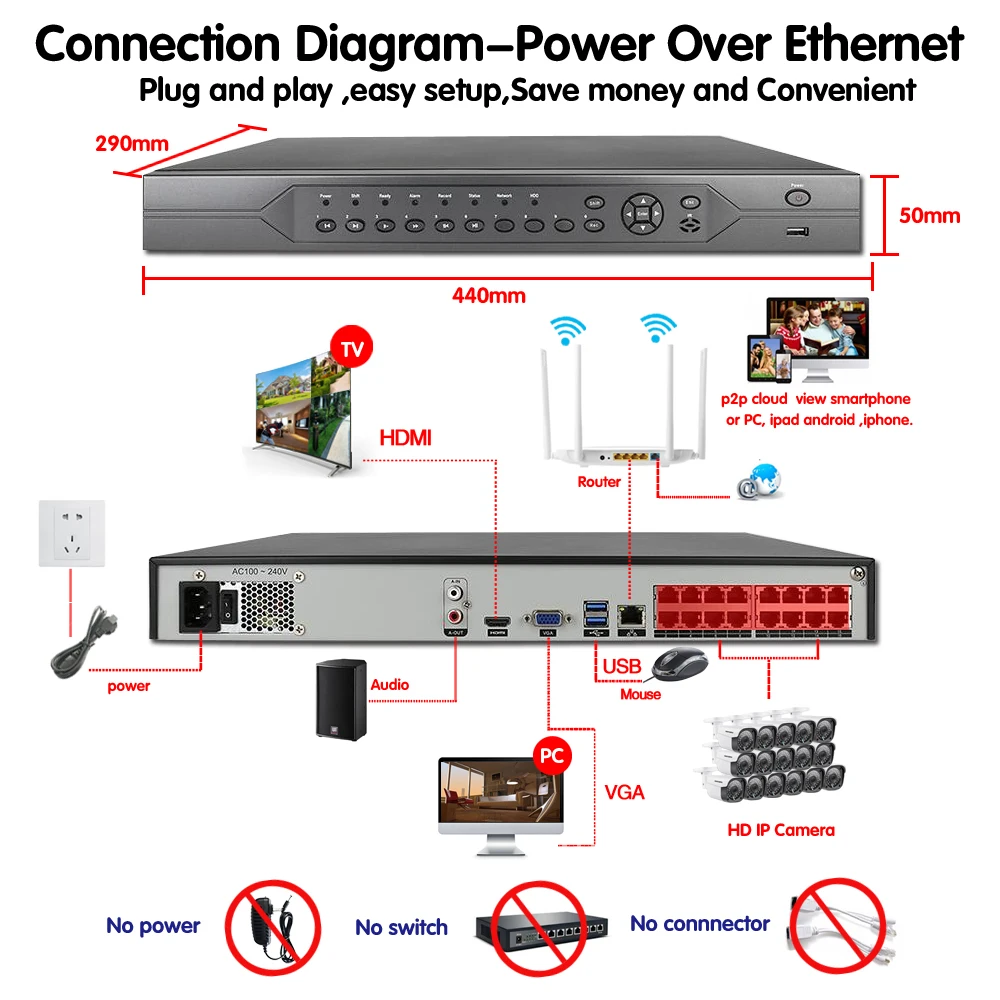 NINIVISION 16CH CCTV System 16PCS 5.0MP Outdoor Weatherproof Security Camera 16CH 5MP NVR Night Vis