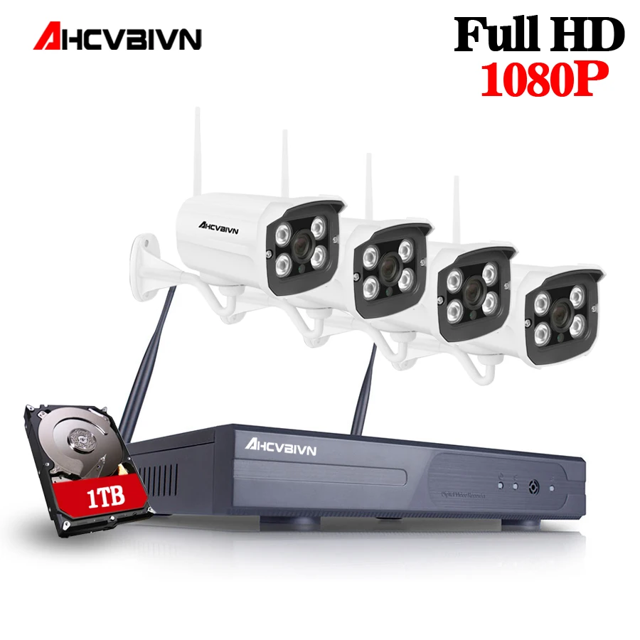 AHCVBIVN 2.0MP FULL HD Wifi CCTV Camera System Kit 4CH Wireless NVR Kit 1080P Wifi Wireless IP Came