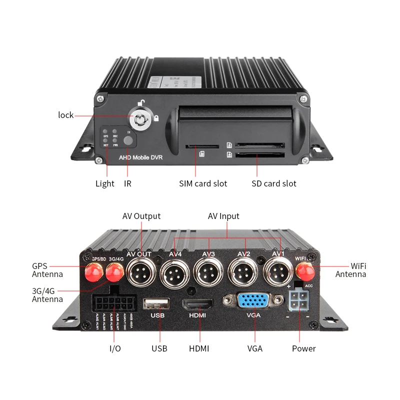 CCTV Real Time Surveillance 4CH 4G GPS Wifi SD Vehcile Mobile Dvr Video Recorder +3Pcs Side Back Vi