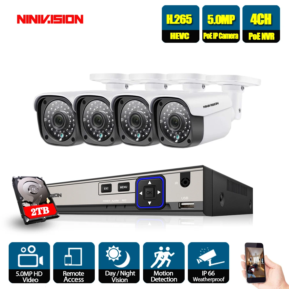 H.265 5MP CCTV Security Camera System 4CH POE NVR With IP Camera CCTV Kit Waterproof IP66 Video Sur
