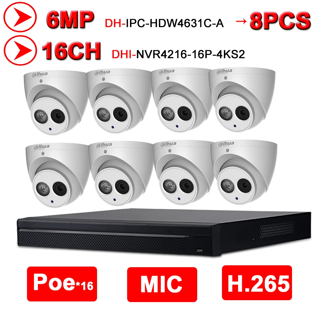 BEST Dahua NVR Kit 6MP 16+8 Security CCTV camera 8PCS 6MP IP Camera IPC-HDW4631C-A 16POE 4K NVR NVR4216-