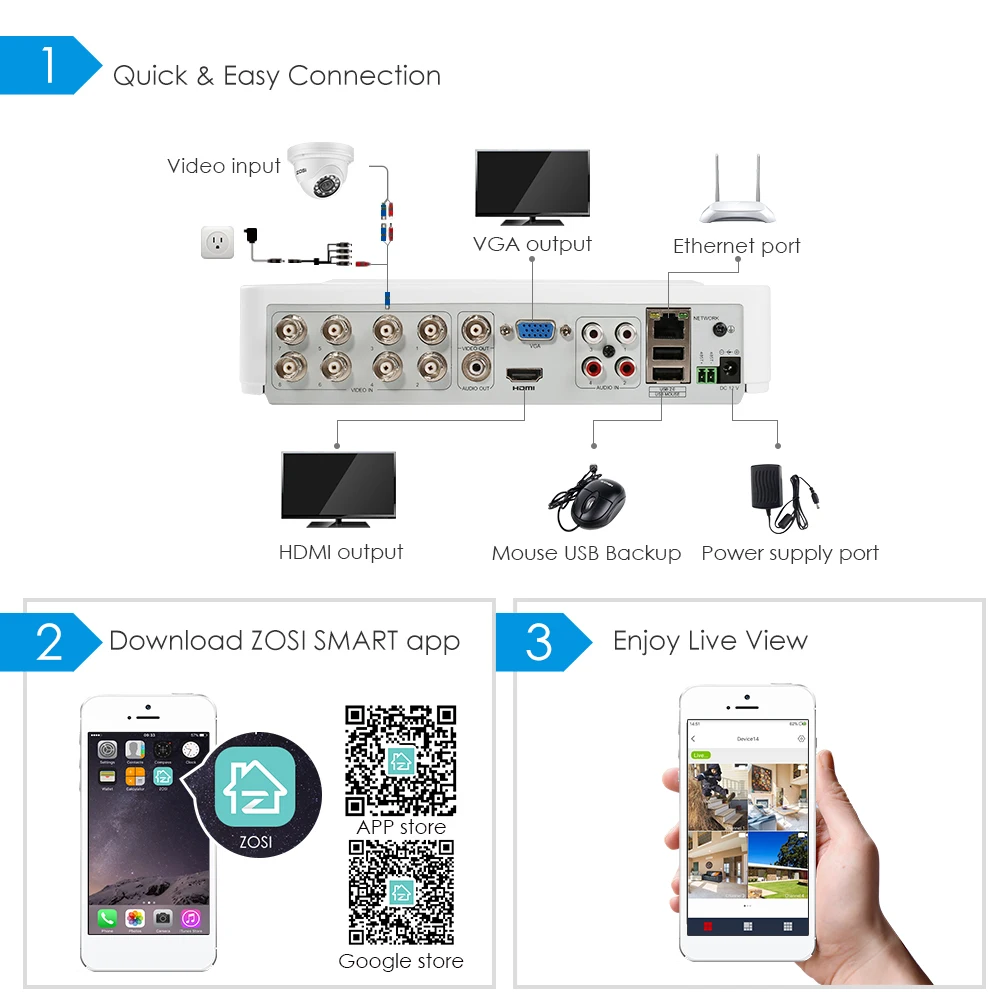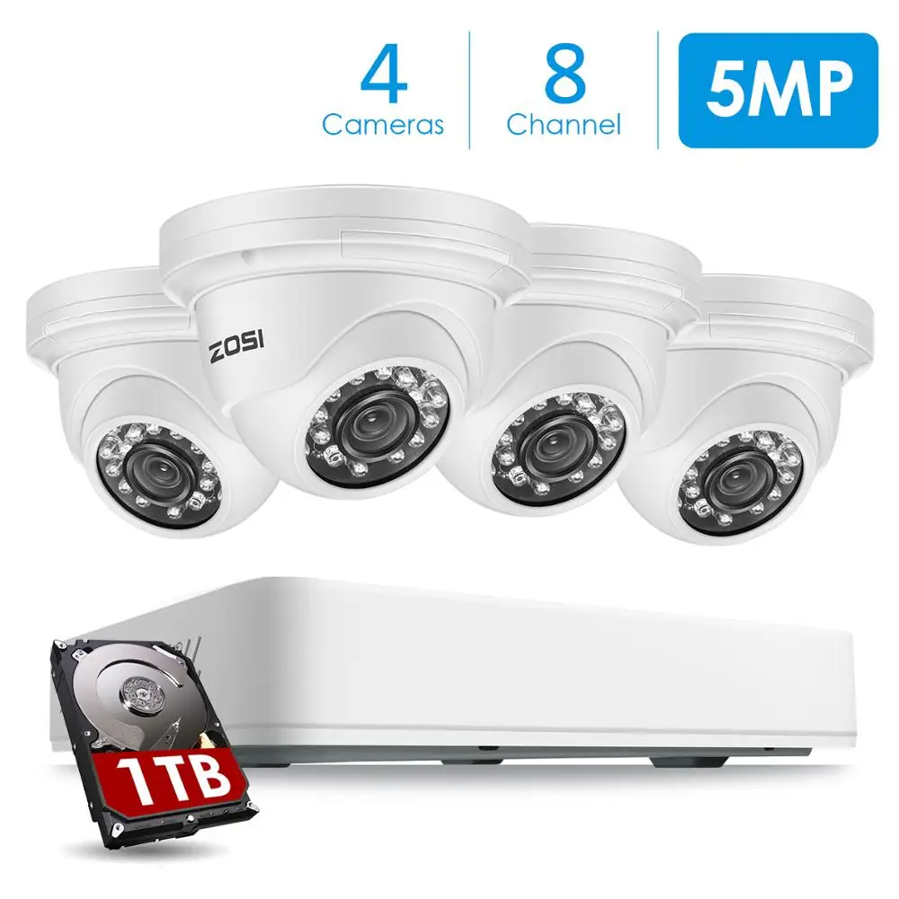 BEST QUALITY ZOSI 5MP Super HD Camera Security CCTV System 8CH H.265 DVR with 1TB and 4pcs Outdoor/Indoor Waterp